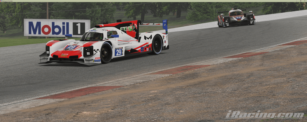 The race however, went horribly. I accidentally picked my Le Mans Wet setup for the race, instead of my Mosport Wet setup (I mis-clicked I guess). I struggled for grip in the ultra-low downforce setup, and lost 1-2s per lap to the front. I thought I picked up damage, it was that different from qualifying. To add insult to injury, my tires wore out too much, and weren’t going to make it the full race. This was after I decided to make an early stop. Instead of continuing on in misery, I just retired the car with 10mins remaining. That was when I realized my setup choice error.