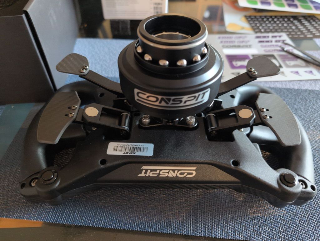 Next was the wheel its self. I had considered getting a Moza KS wheel to stay in the Moza ecosystem but then I was made aware of the Conspit 300GT wheel. This was a hair more expensive than the KS wheel, but was Simhub compatible for the lights, and critically, has a multi-function encoder. Depending on what position that one is in, it will remap the inner two thumb encoders. This is huge, because one of my reasons for wanting an upgraded button box, was to be able to map more in-car settings in anticipation for the GTP Hybrid update on iRacing. Turns out I didn’t need it for the new hybrid update because of how they locked the controls but at least I can do it in Le Mans Ultimate now.