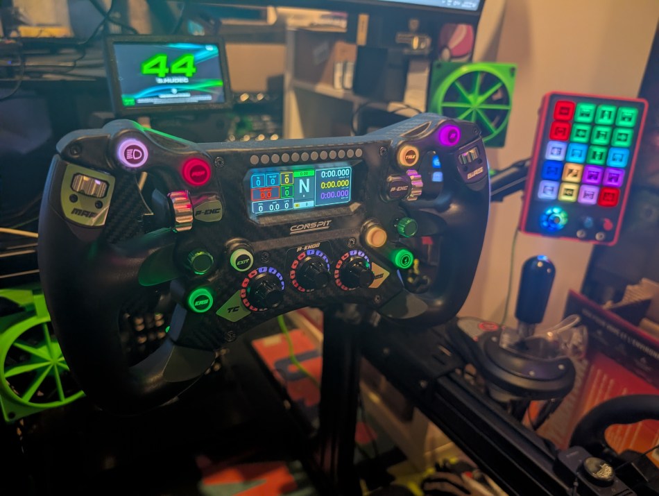 Although I consider this more to be a side-grade, it has ended up being the most important upgrade I’ve made yet. I wasn’t satisfied with the Moza FSR (gen1) wheel’s dash screen templates; some things didn’t work and didn’t have everything I wanted to see. This was most apparent when I was running in the IndyCar league on XMS. I decided that going to a GT style wheel that didn’t have a dash on it, and then getting a standalone dash was the best move. Likely I could sell my FSR wheel for at or more than buying a new wheel and dash combo.